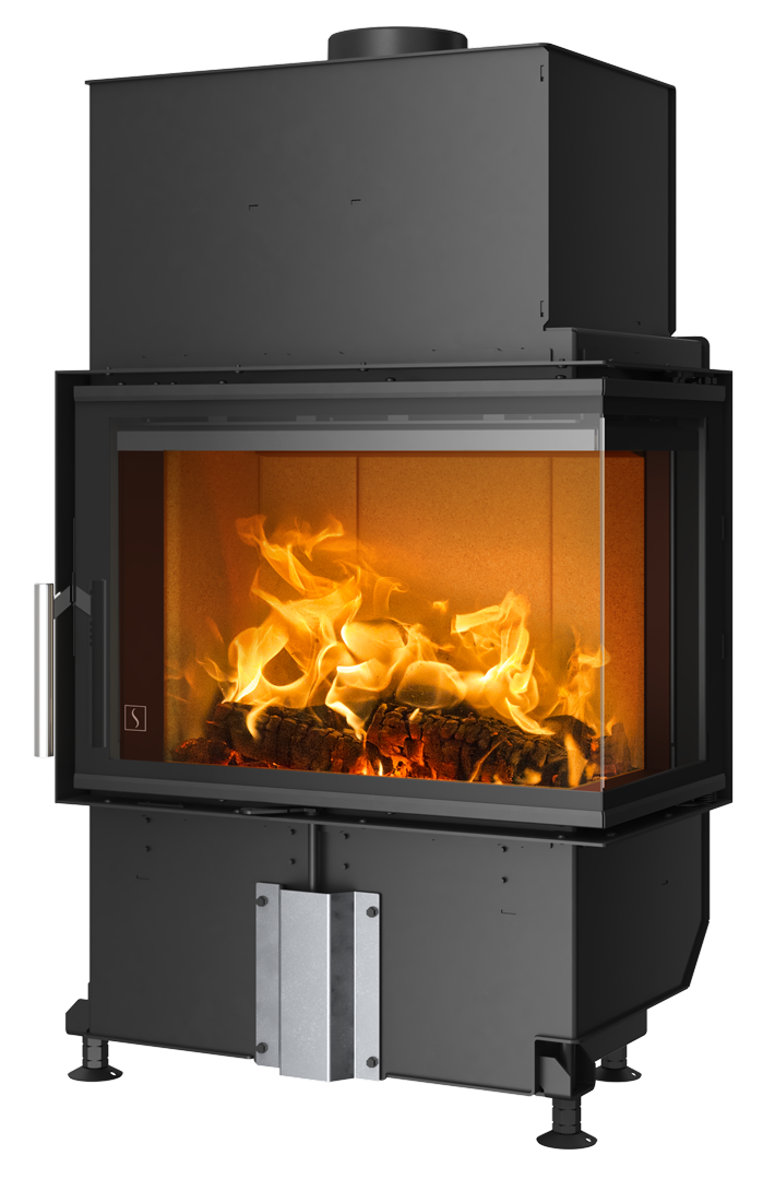 Scan 5103 er en hjørneinnsats med horisontalt flammebilde. Den leveres med glass i front og på høyre side.