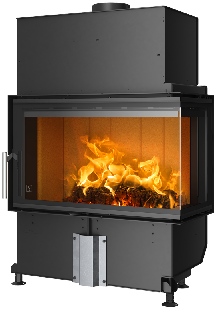 Scan 5107 er en peisinnsats med diskret design, men likevel stort særpreg, som lar deg nyte flammene gjennom den tosidige glassdøren, noe som gir følelsen av å sitte ved en åpen peis. Luftinntaket reguleres enkelt med bare én hendel og et vakkert håndtak og en svart ramme rundt glasset fullfører helhetsinntrykket. Velg mellom en høyre- eller venstrehengslet modell som kan installeres midt i rommet eller passer perfekt i et hjørne. Du kan også installere ekstra varmelagrende steiner i begge peisinnsatsene. Disse legges skjult inn i toppkammeret og gir ekstra varme i opp til 12 timer etter at siste vedkubbe er lagt i.