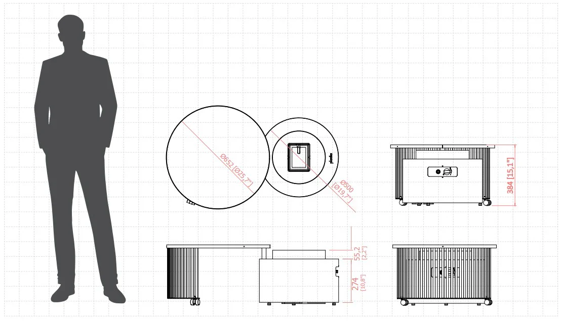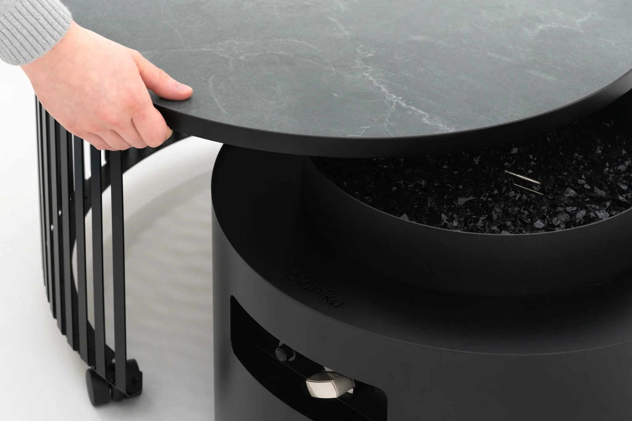 Moon er en elegant utendørs gasspeis med sirkulær form og et rolig, balansert flammebilde. Den lave profilen gjør den enkel å plassere i både loungeområder og åpne terrasser. Flammen ligger bak herdet glass som gir beskyttelse mot vind og et tydelig uttrykk. Peisen drives av propan, krever ingen strømtilkobling og tennes med integrert tenner. Flammehøyden justeres trinnløst. Moon leveres komplett med dekorstein, glass, gasslange, regulator og beskyttelsestrekk, og fungerer som et naturlig midtpunkt i utendørs soner der man ønsker varme og stemning.
